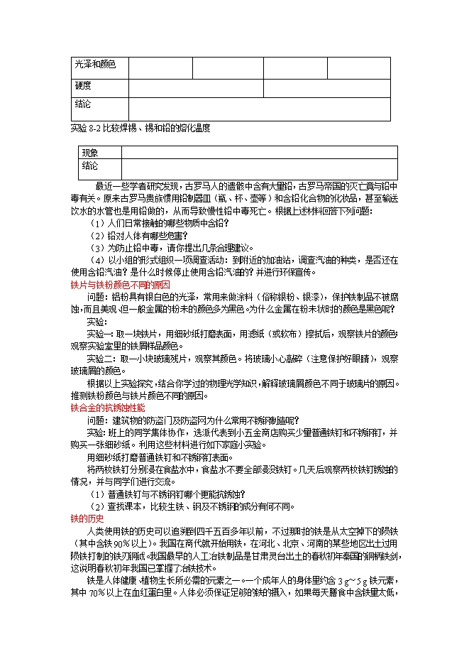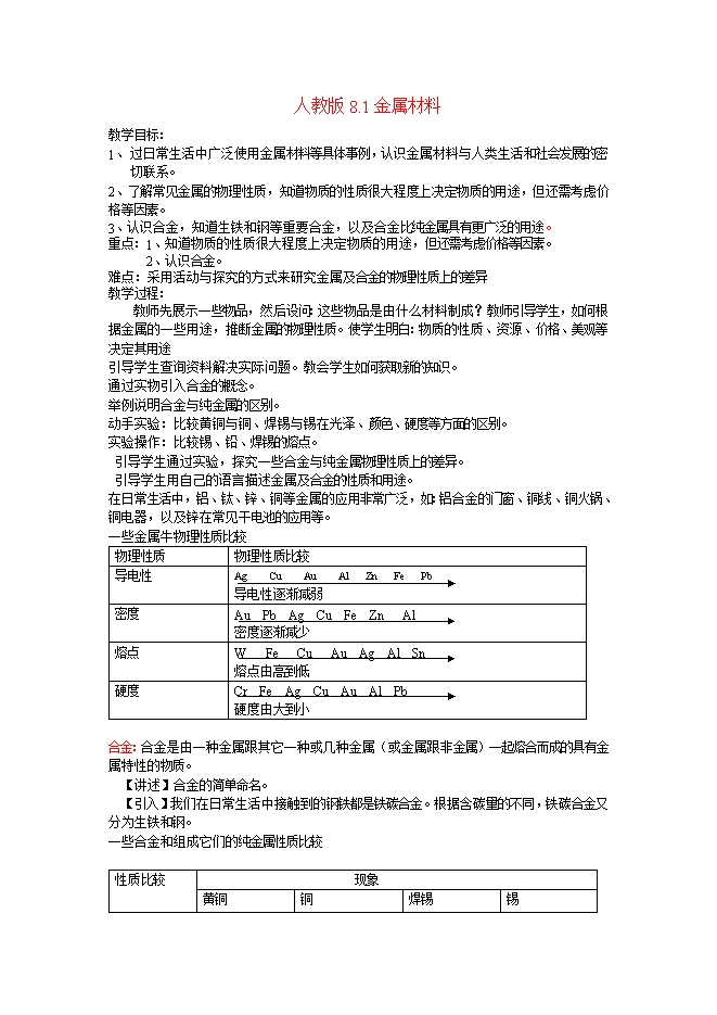 人教版《8.1金属材料》教案