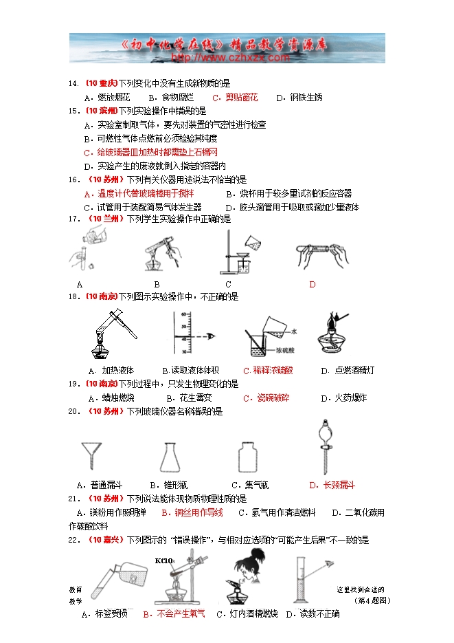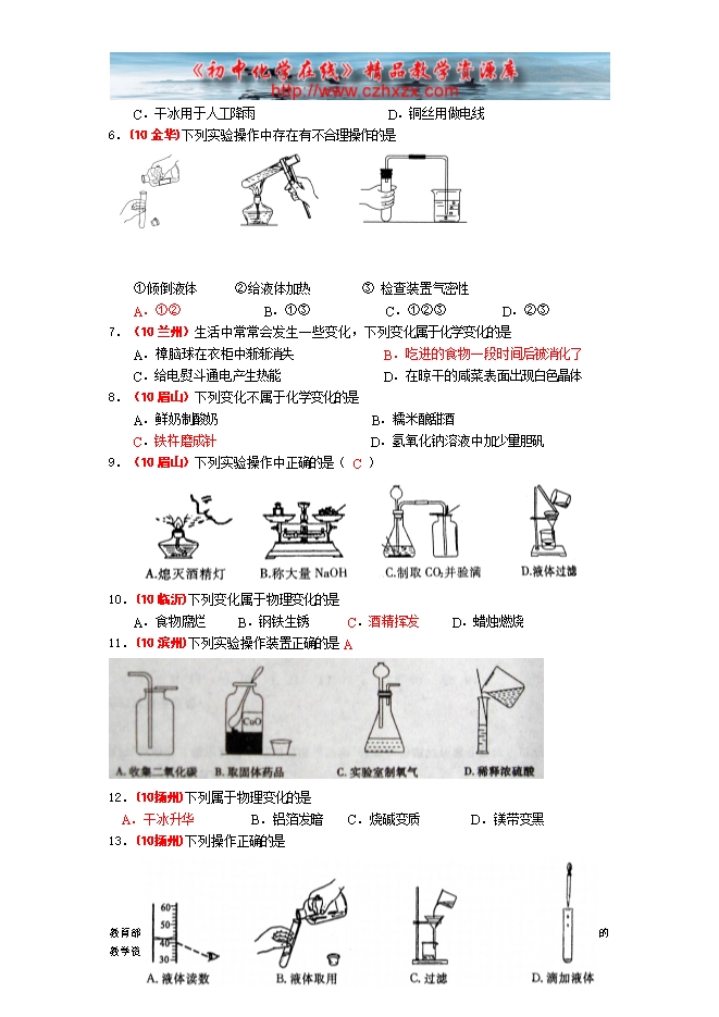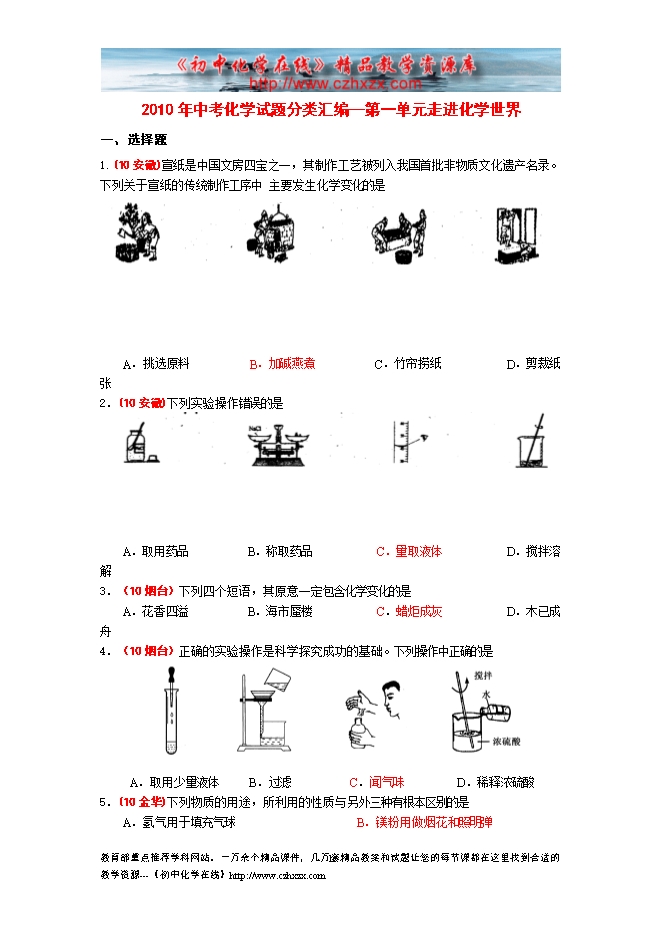 2010年中考化学试题分类汇编—第一单元 走进化学世界