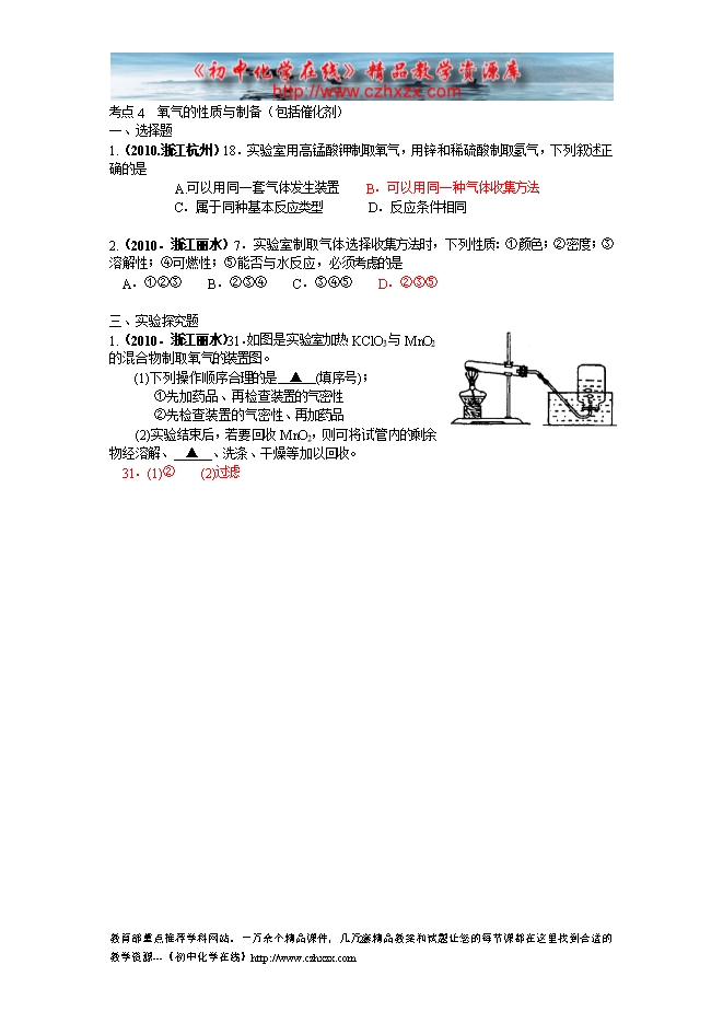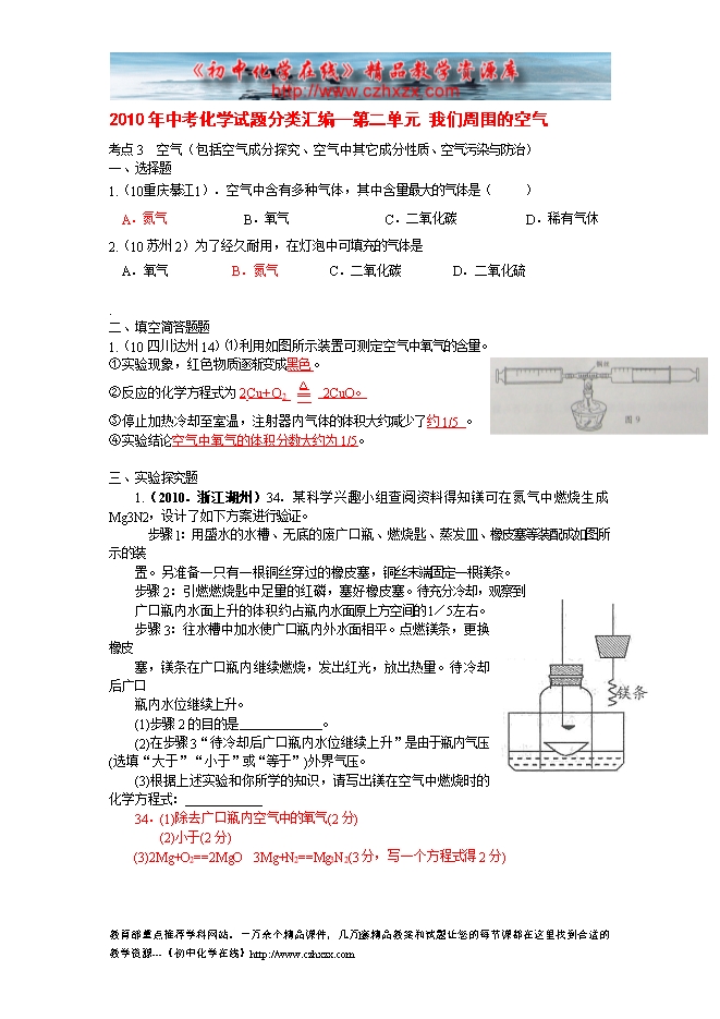 2010年中考化学试题分类汇编—第二单元 我们周围的空气