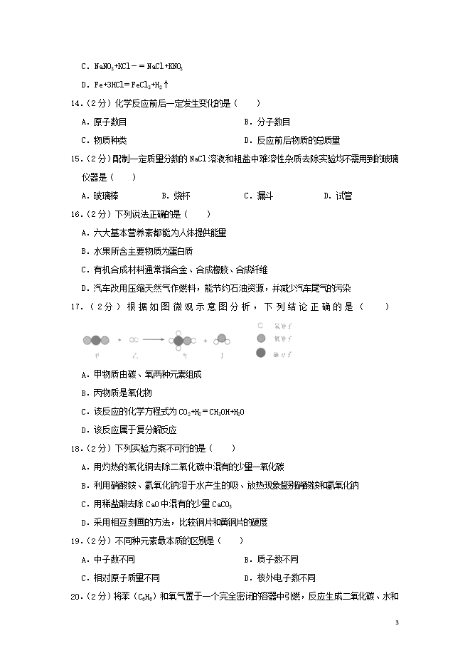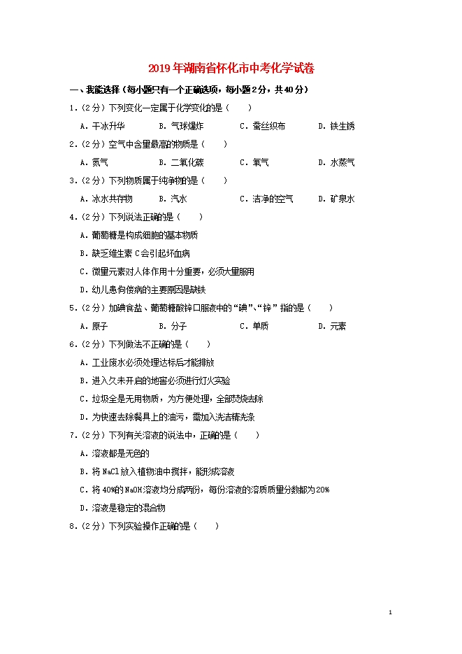 【内容简介】2019年湖南省怀化市中考化学真题试题(word版含答案解析)