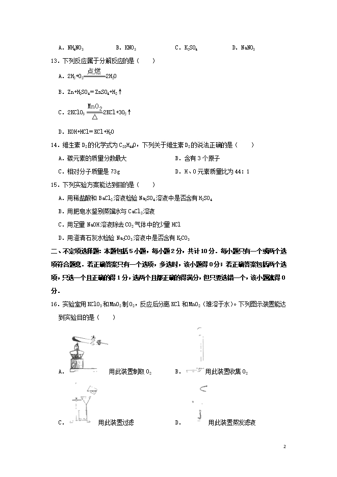 【内容简介】2019年江苏省扬州市中考化学真题试题(word版含答案解析)