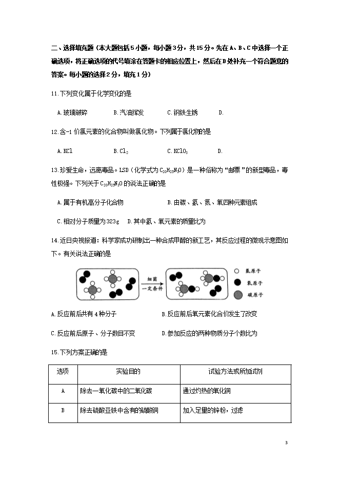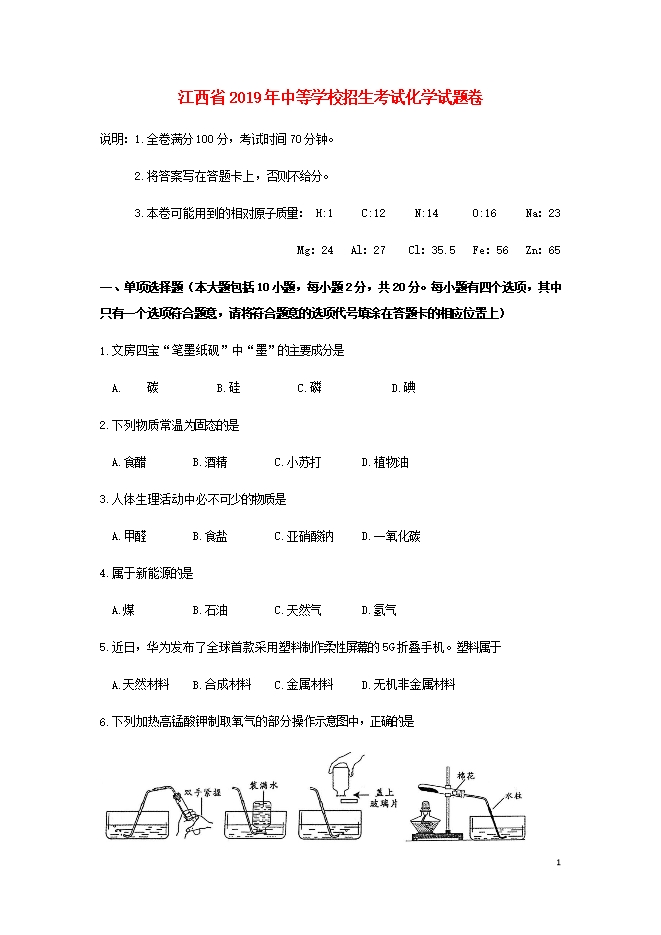 【内容简介】2019年江西省中考化学真题试题(word版含答案)