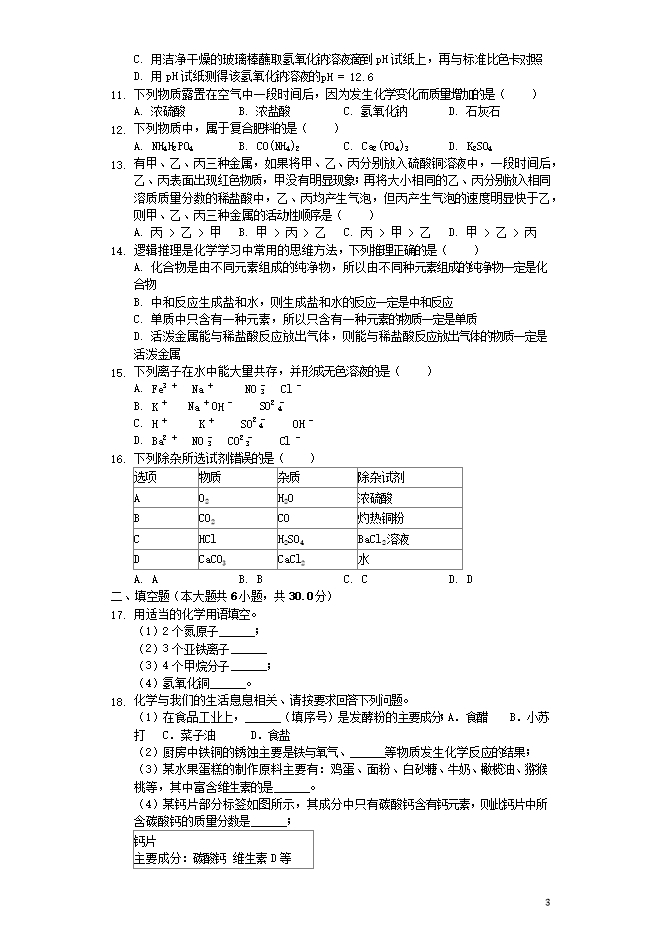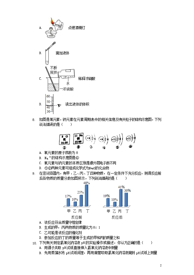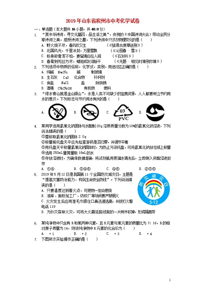 2019年山东省滨州市中考化学真题试题(word版含答案解析)