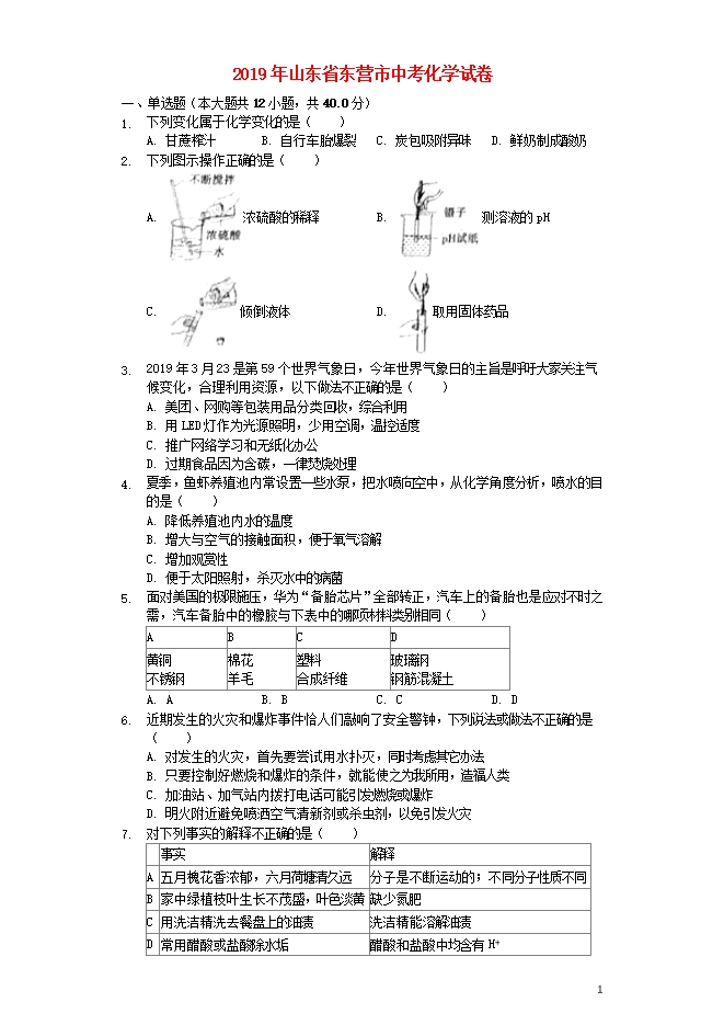 【内容简介】2019年山东省东营市中考化学真题试题(word版含答案解析)