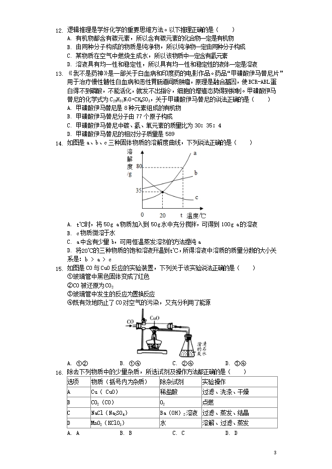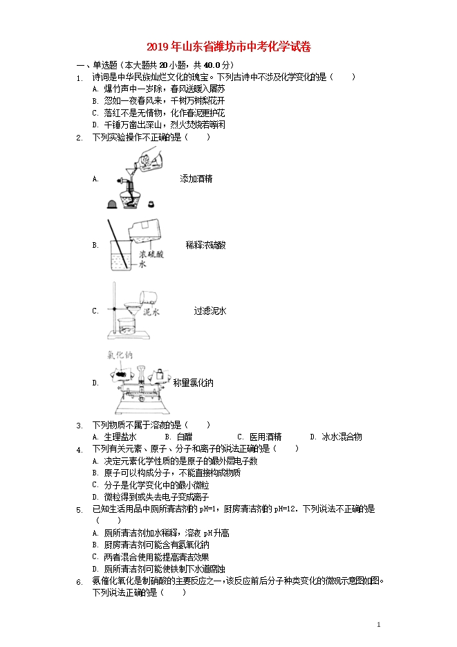 2019年山东省潍坊市中考化学真题试题(word版含答案解析)