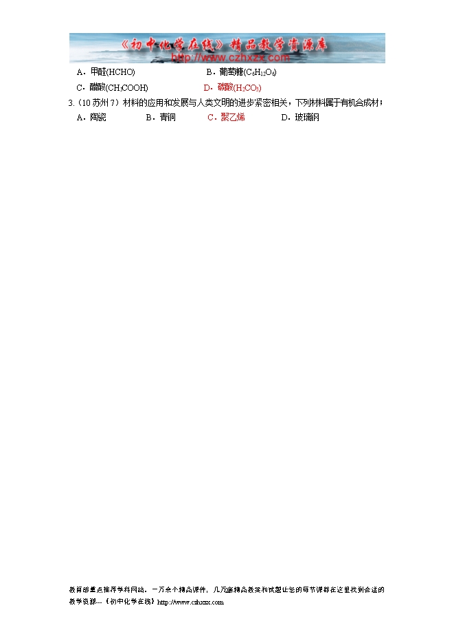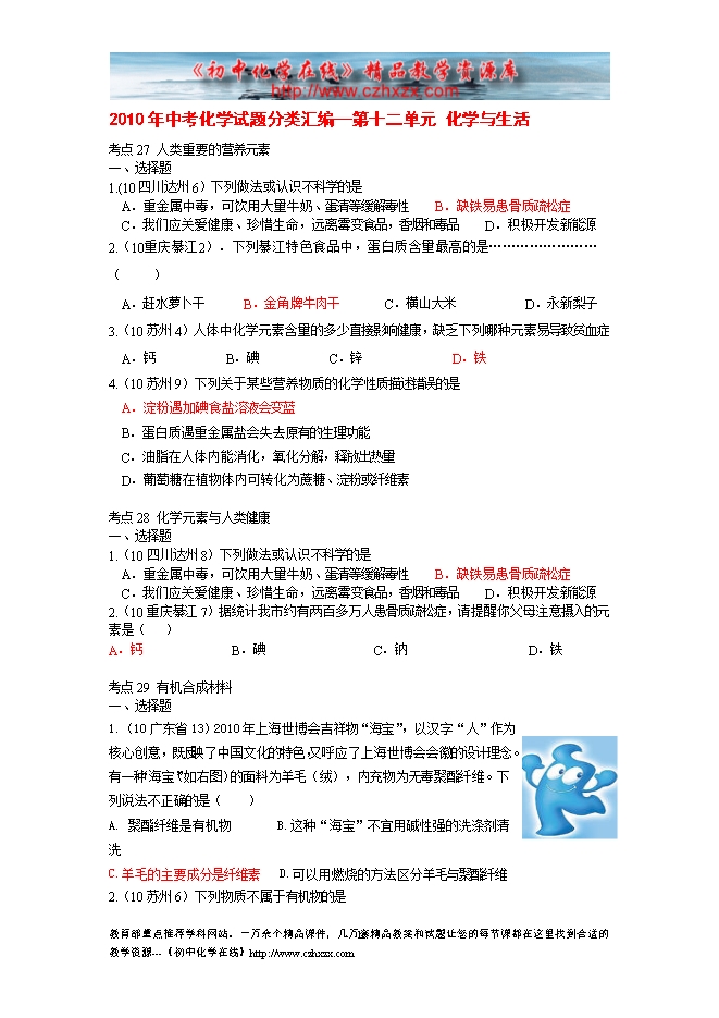 2010年中考化学试题分类汇编—第十二单元 化学与生活