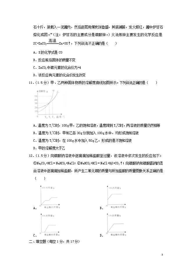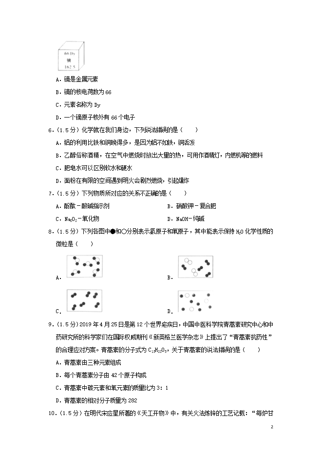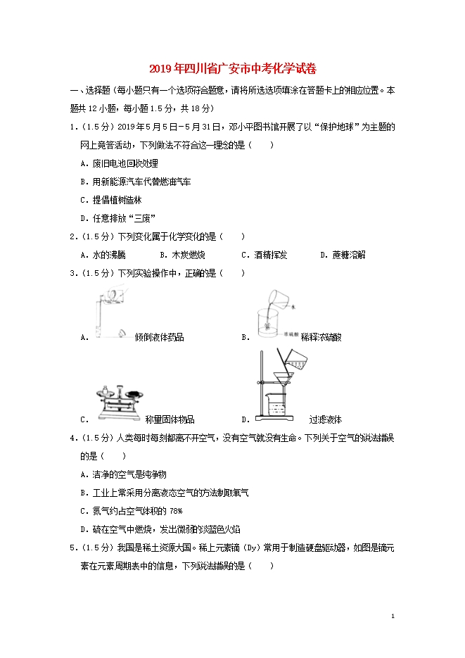 【内容简介】2019年四川省广安市中考化学真题试题(word版含答案解析)