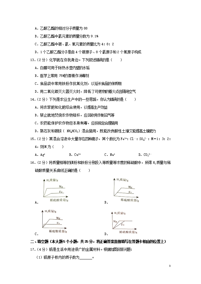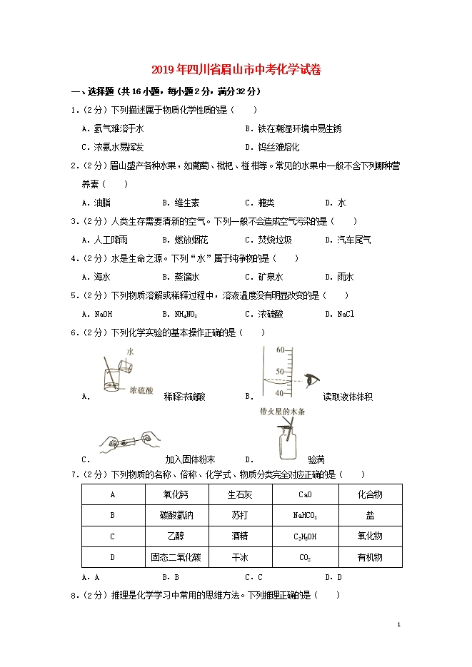 【内容简介】2019年四川省眉山市中考化学真题试题(word版含答案解析)
