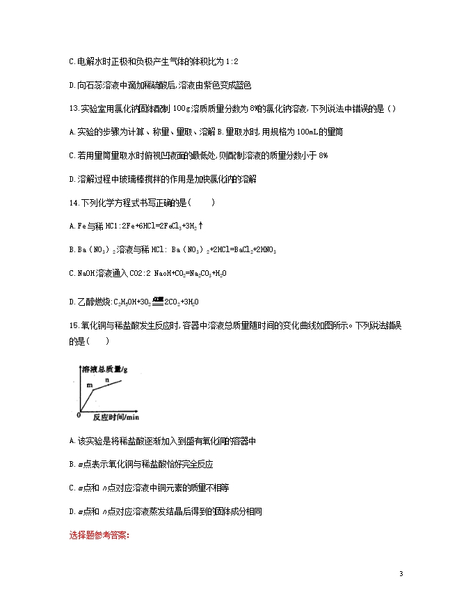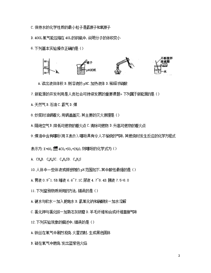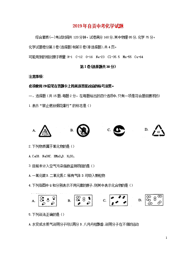 2019年四川省自贡市中考化学真题试题(word版含答案)