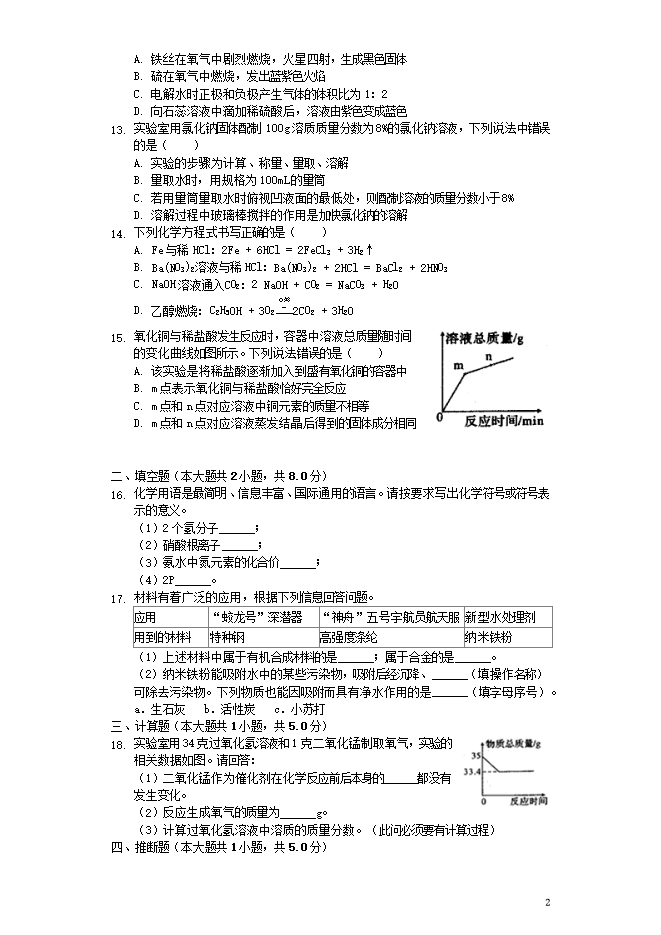 【内容简介】2019年四川省自贡市中考化学真题试题(word版含答案解析)