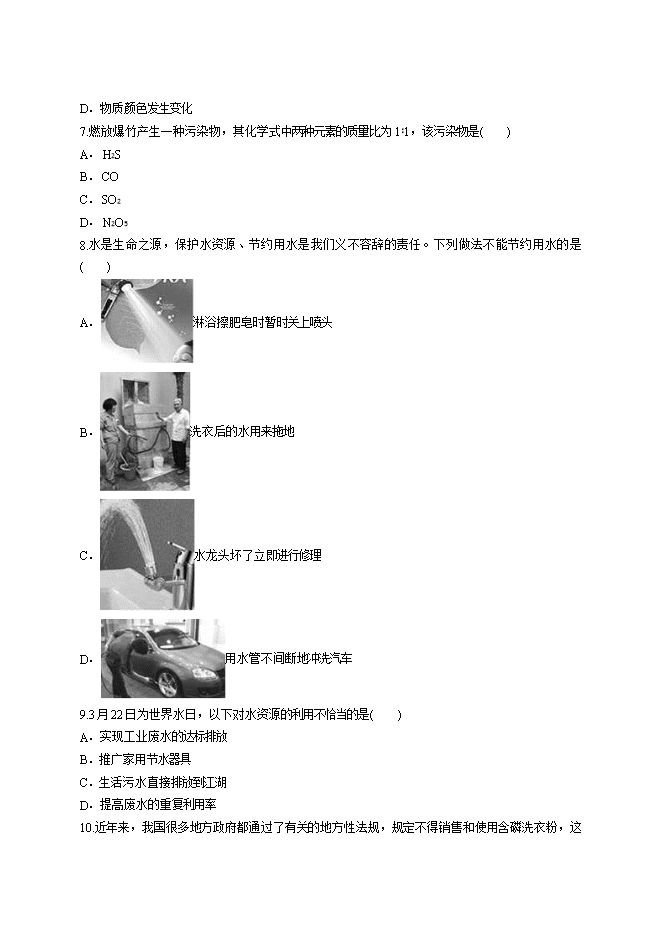 【内容简介】2019年人教版初中化学第四单元《自然界的水》测试卷(word版含答案解析)