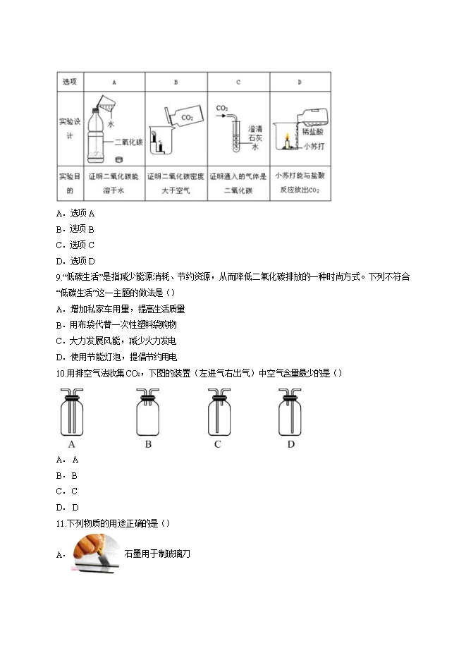 【内容简介】2019年人教版初中化学第六单元《碳和碳的氧化物》测试卷(word版含答案解析)