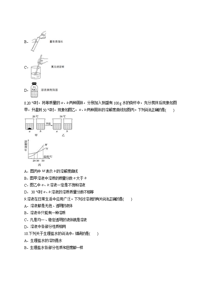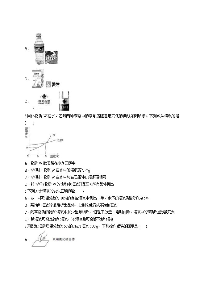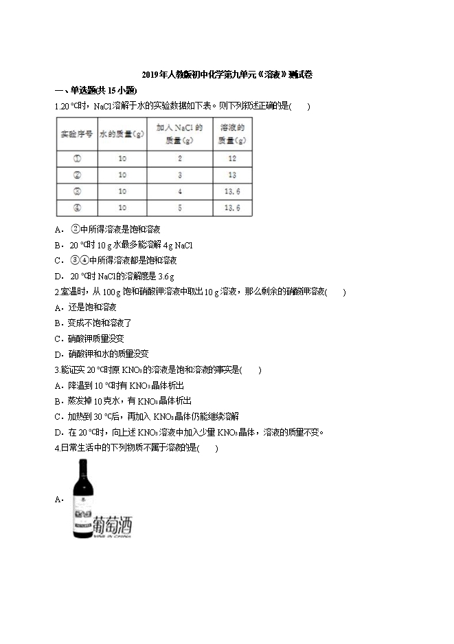 【内容简介】2019年人教版初中化学第九单元《溶液》测试卷(word版含答案解析)