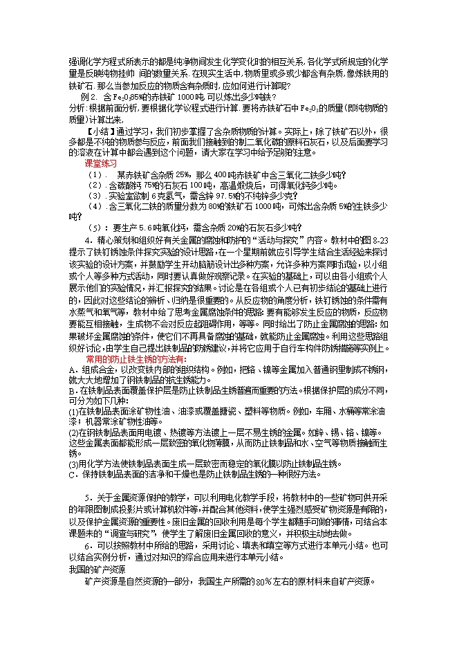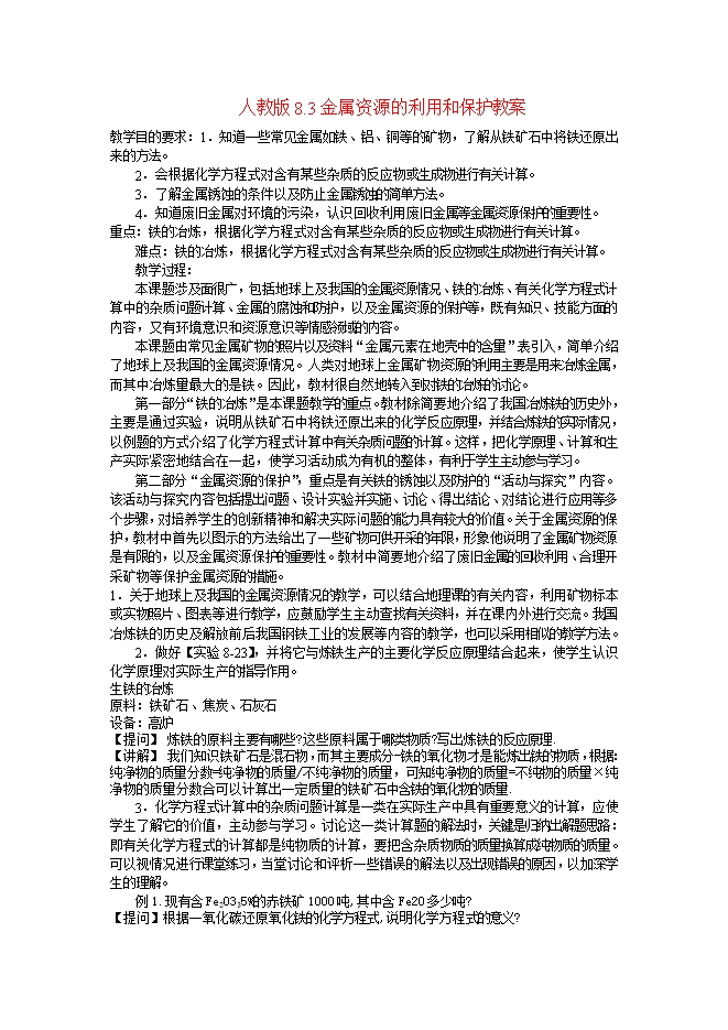 人教版《8.3金属资源的利用和保护》教案
