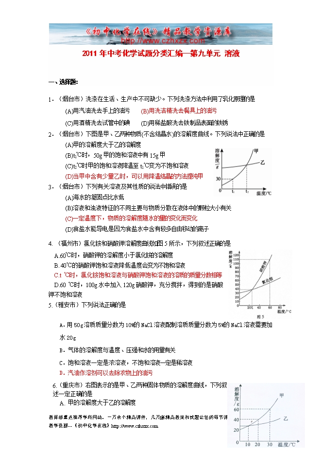- 下一份试卷:2011中考化学试题分类汇编--第十单元 酸和碱
