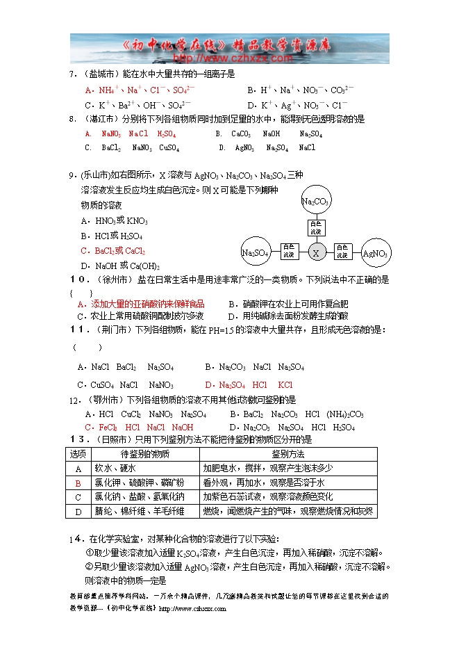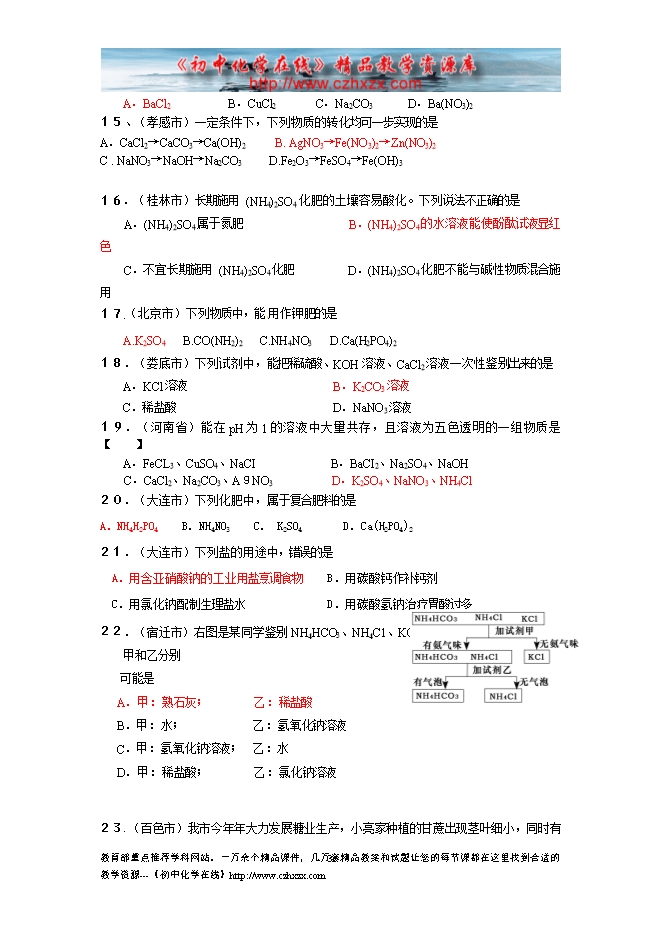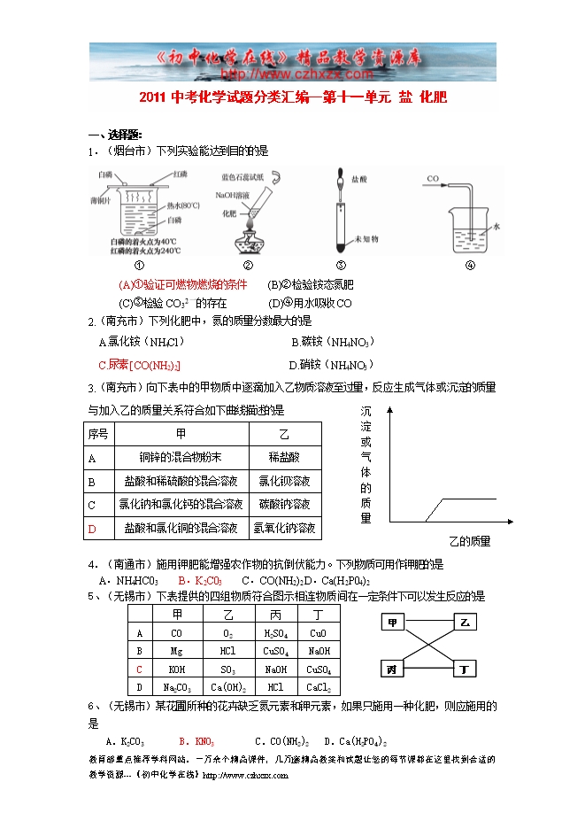 - 下一份试卷:2011中考化学试题分类汇编--第十一单元 盐 化肥