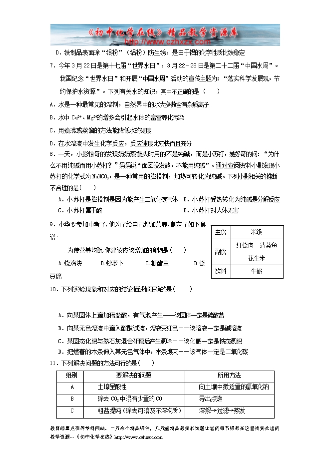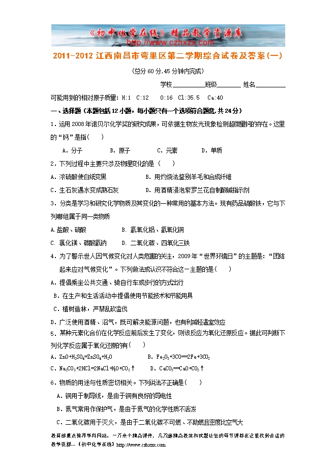 2011-2012江西南昌市弯里区第二学期综合试卷及答案(一)