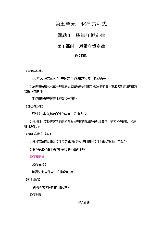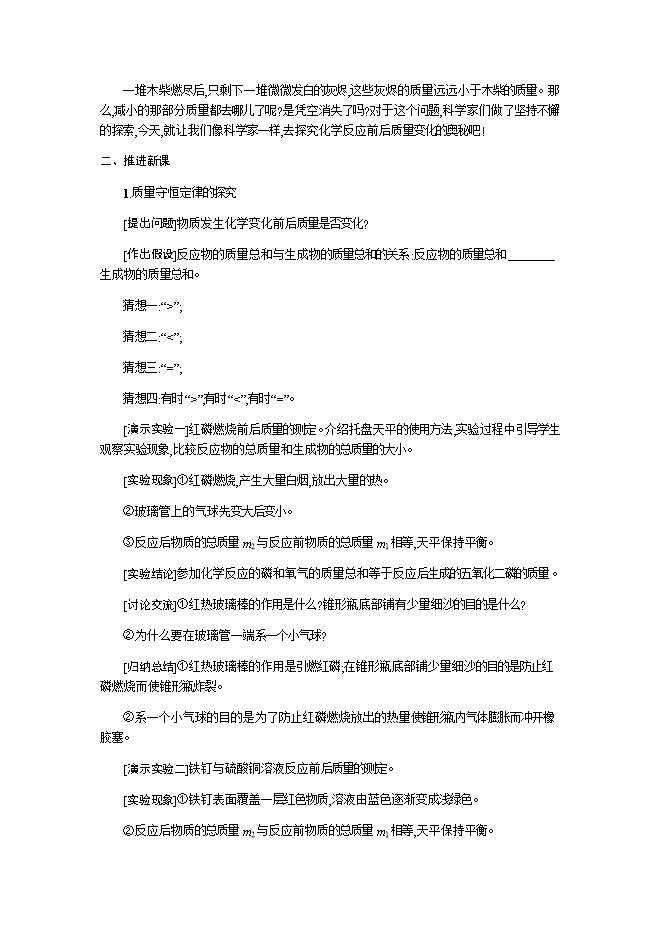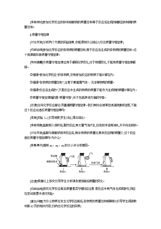 【内容简介】2019秋人教版九年级化学上册《第五单元 课题1 质量守恒定律》(2课时)