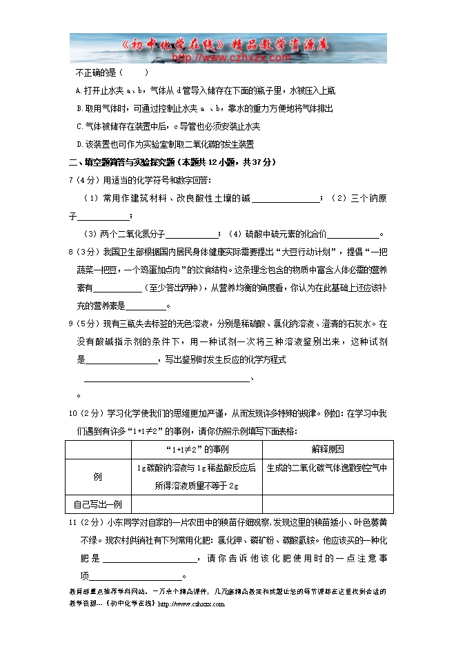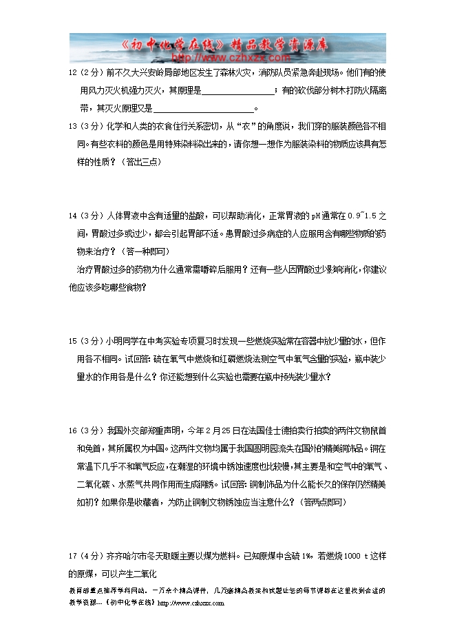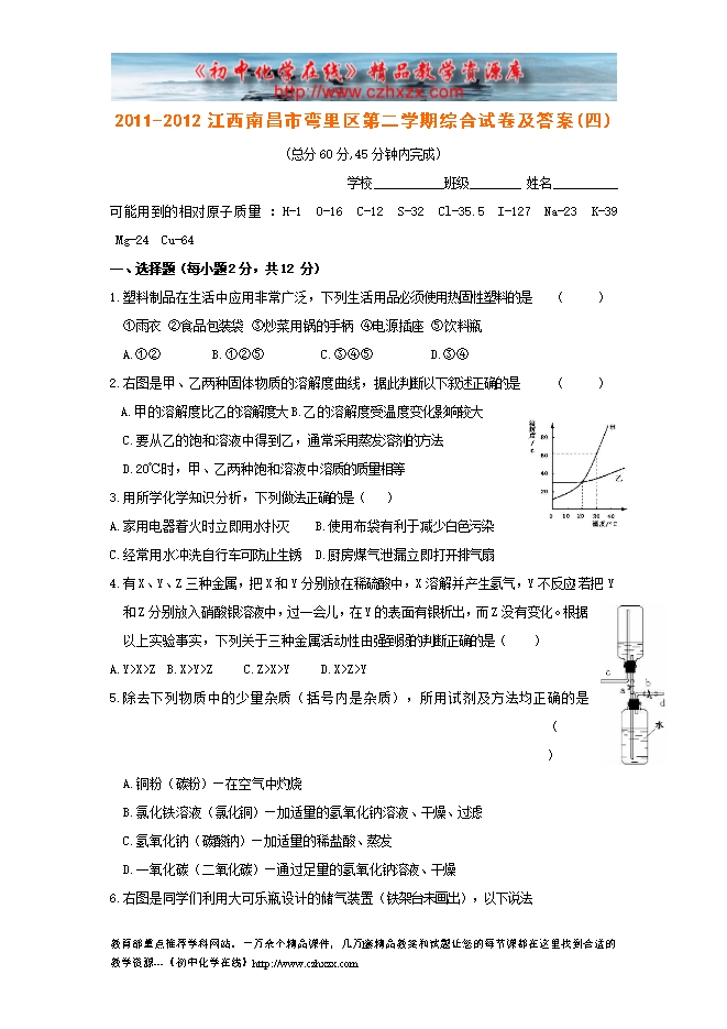 2011-2012江西南昌市弯里区第二学期综合试卷及答案(四)