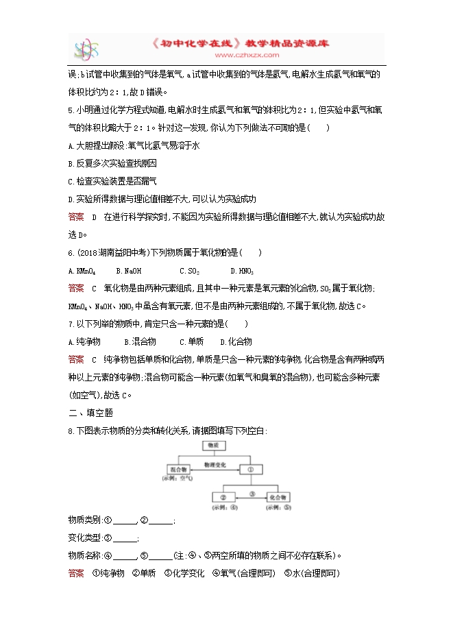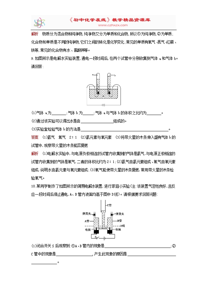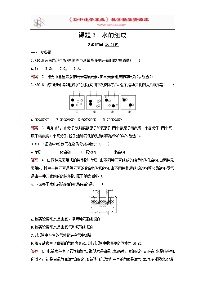 【内容简介】2019年秋季九年级人教版化学《第四单元 课题3 水的组成》同步检测(word版含答案解析)