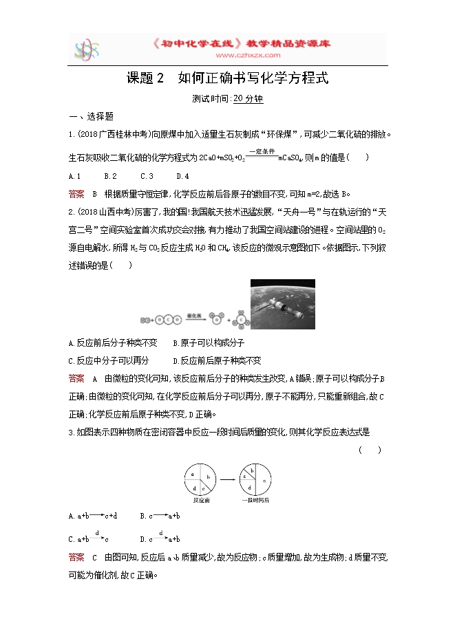 【内容简介】2019年秋季九年级人教版化学《第五单元 课题2 如何正确书写化学方程式》同步检测(word版含答案解析)