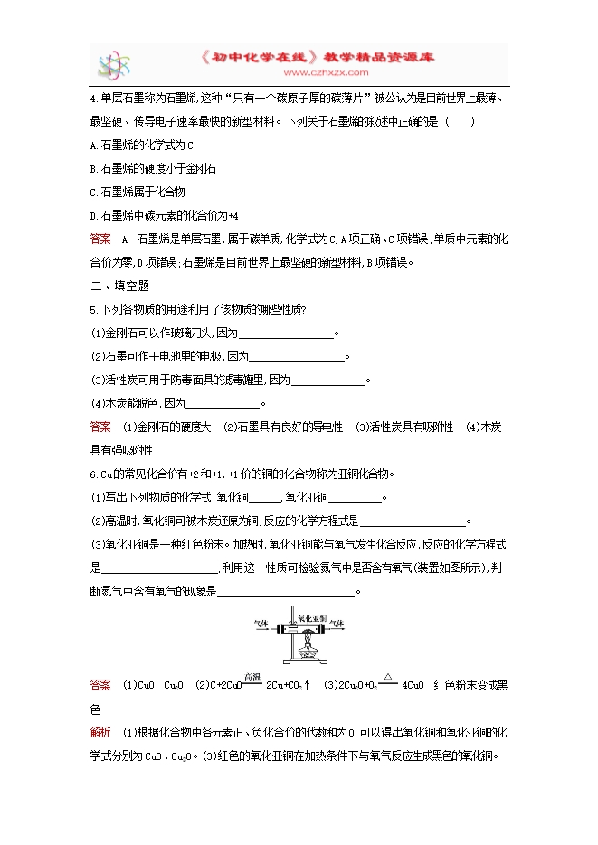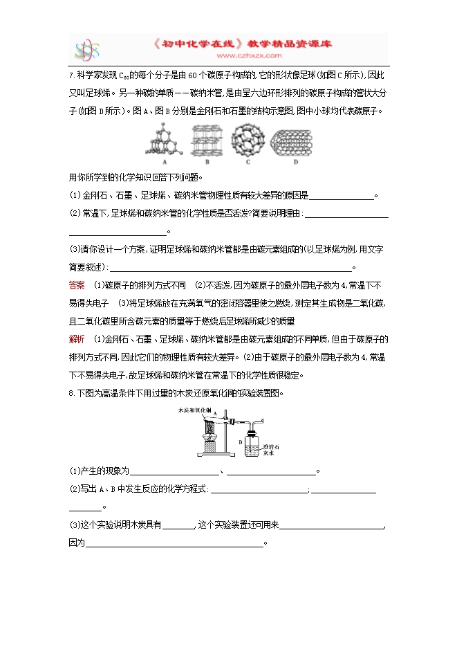 【内容简介】2019年秋季九年级人教版化学《第六单元 课题1 金刚石、石墨和C60》同步检测(word版含答案解析)