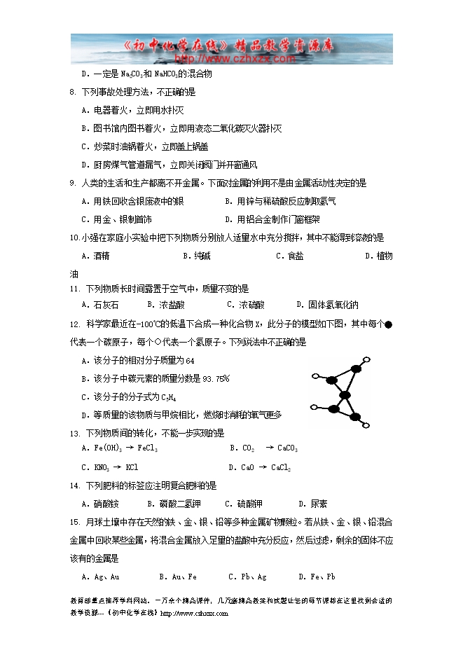 - 下一份试卷:2012湖南省湘潭市中考模拟化学试卷及答案(一)