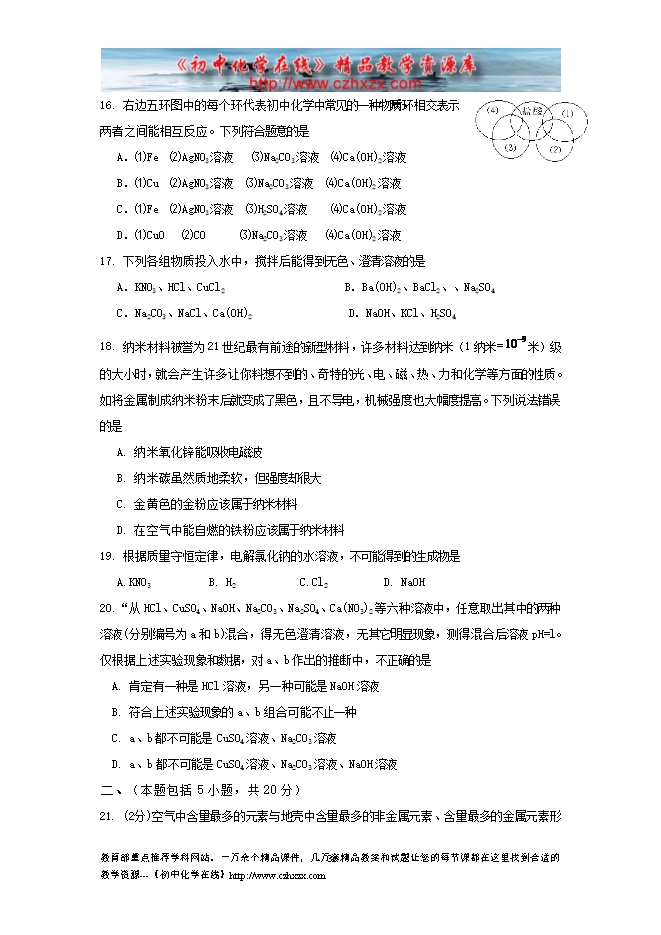 - 上一份试卷:2012赣榆县赣马二中中考化学模拟试题答案(四)