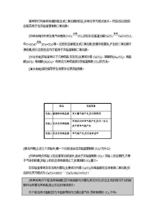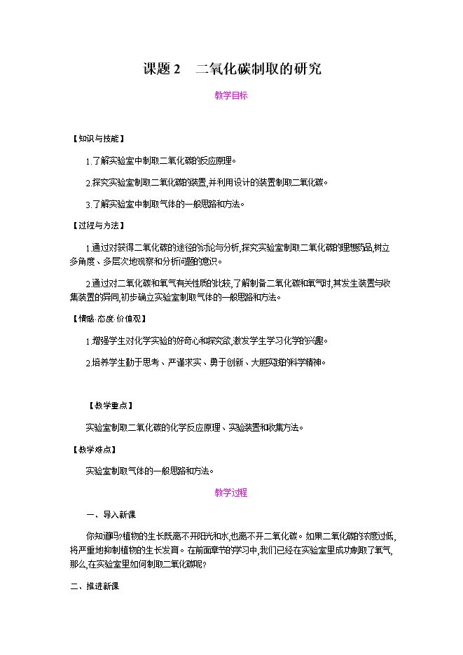【内容简介】2019秋人教版九年级化学上册《第六单元 课题2 二氧化碳制取的研究》教学设计