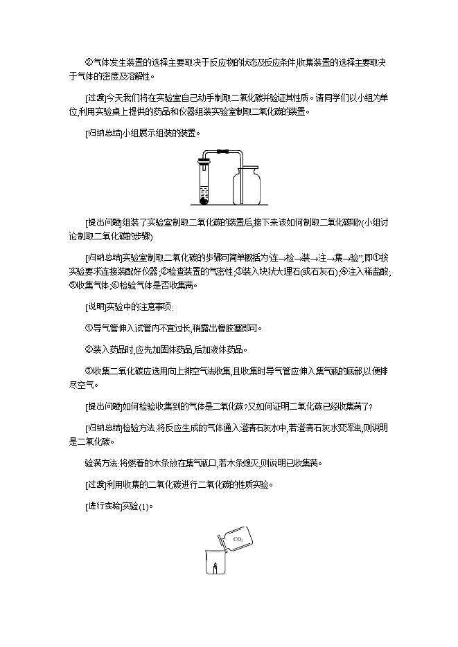 2019秋人教版九年级化学上册《第六单元 实验活动2 二氧化碳的实验室制取与性质》教学设计