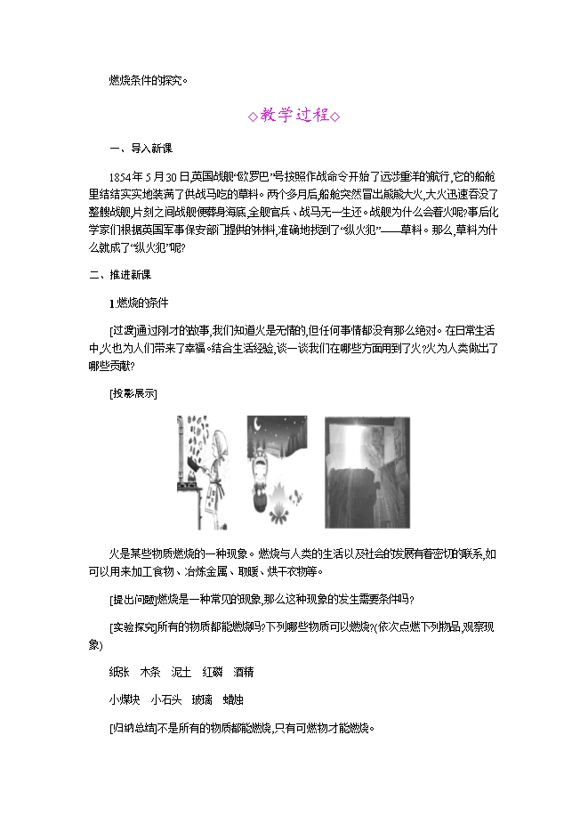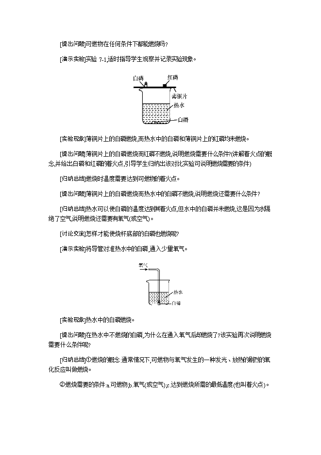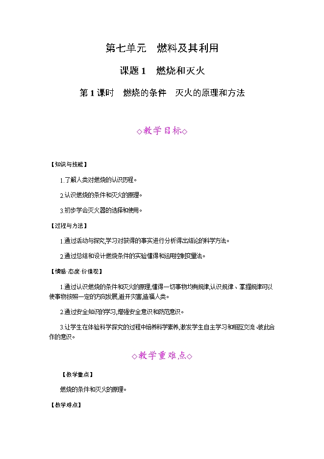 【内容简介】2019秋人教版九年级化学上册《第七单元 课题1 燃烧和灭火 》教学设计(第1课时)