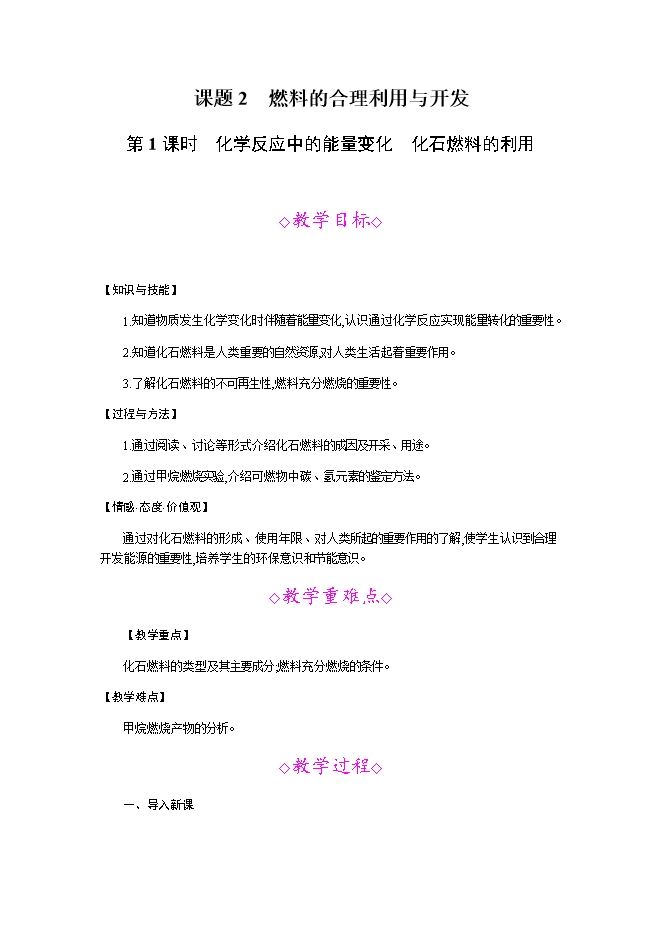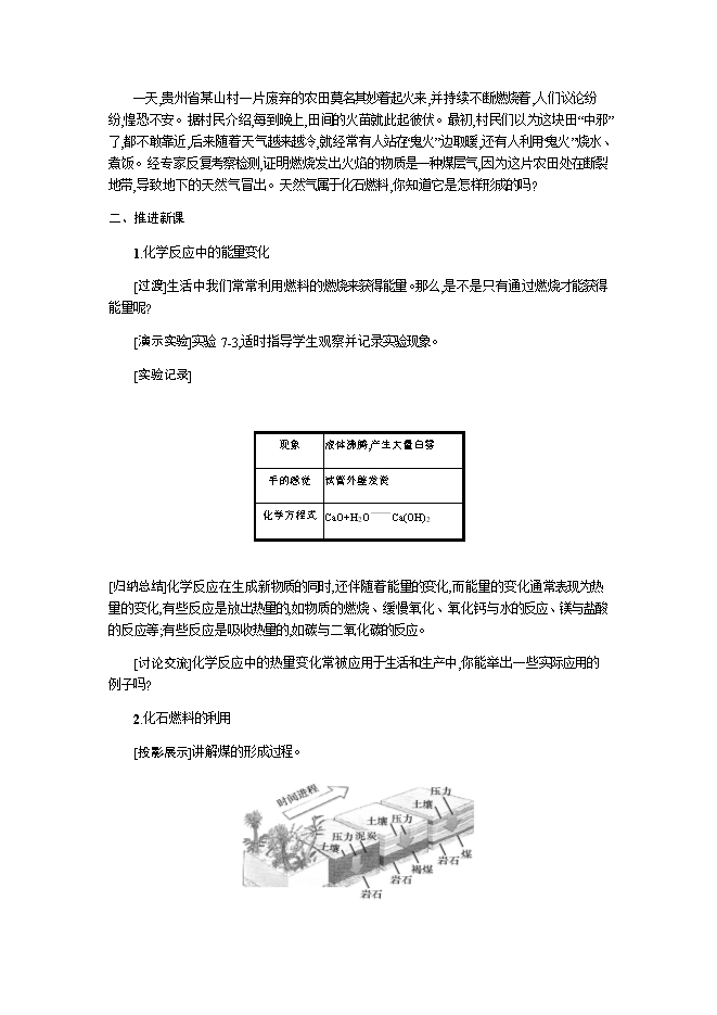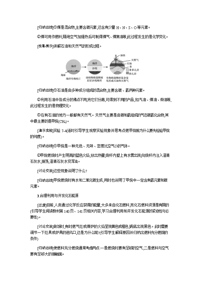 【内容简介】2019秋人教版九年级化学上册《第七单元 课题2 燃料的合理利用与开发 》教学设计(第1课时)
