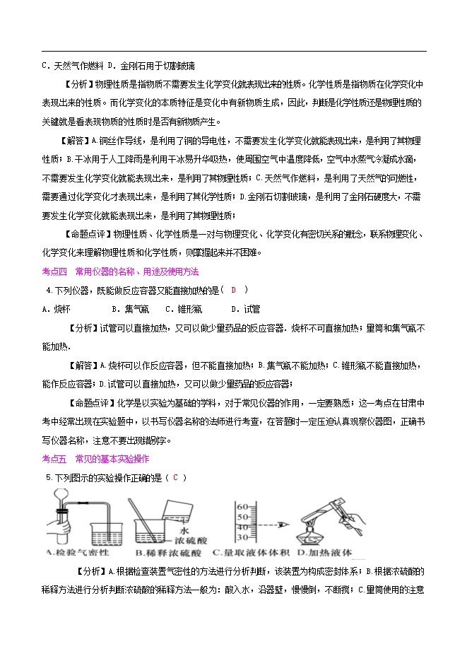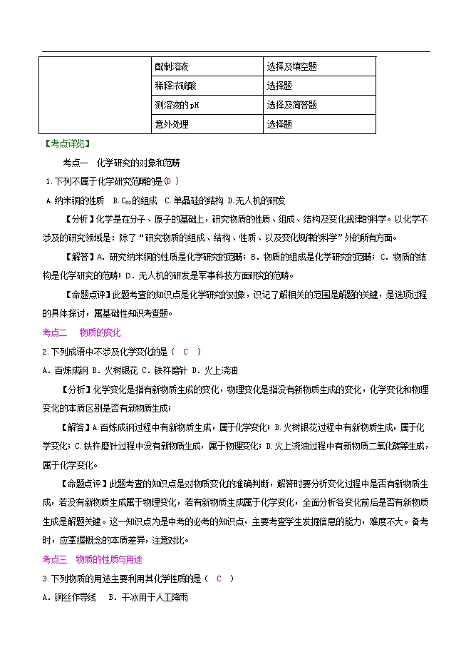 2020中考人教版化学单元考点解读《第一单元 走进化学世界》