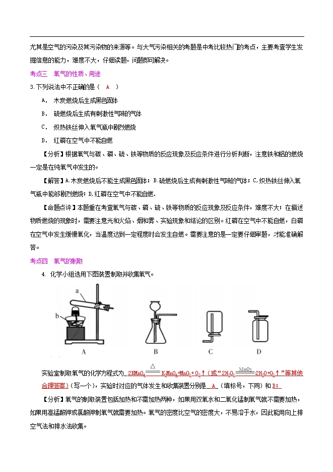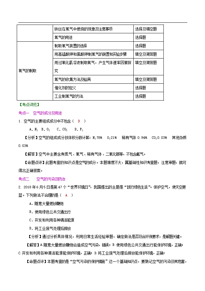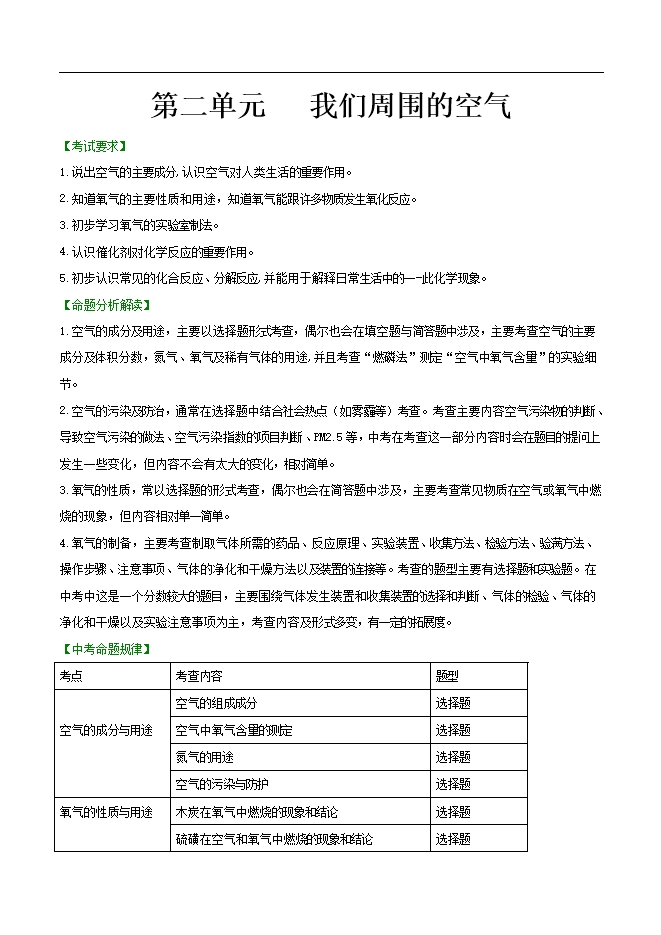 2020中考人教版化学单元考点解读《第二单元 我们周围的空气》