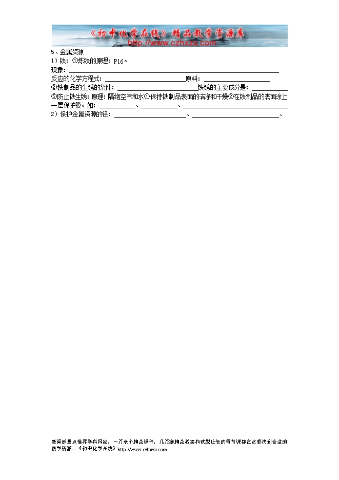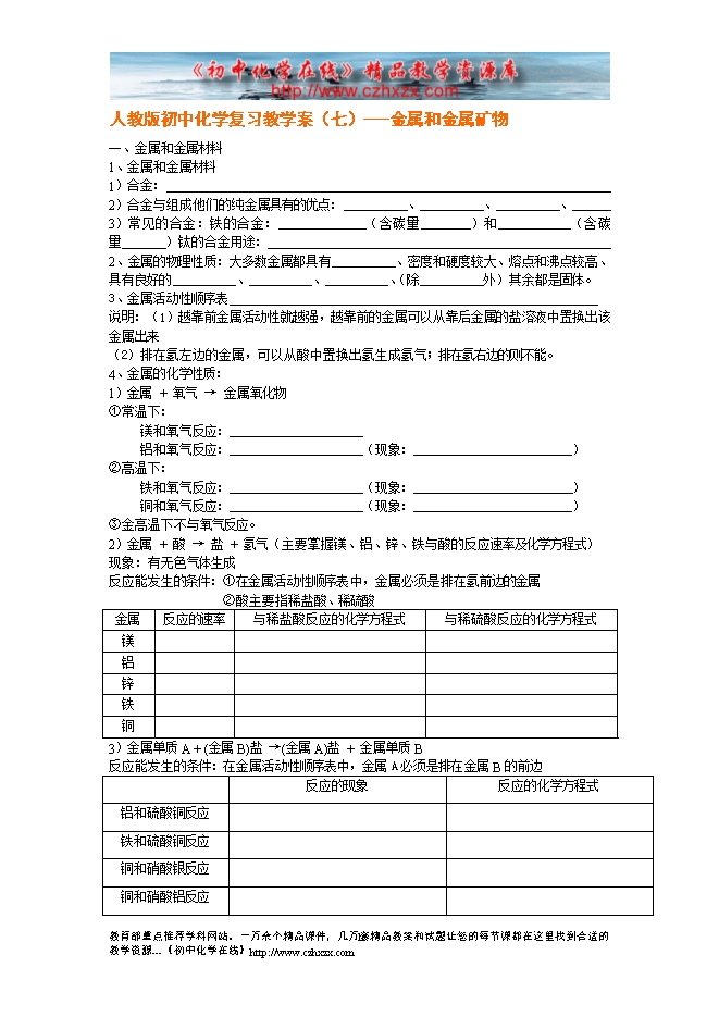 人教版初中化学复习教学案(七)---金属和金属矿物