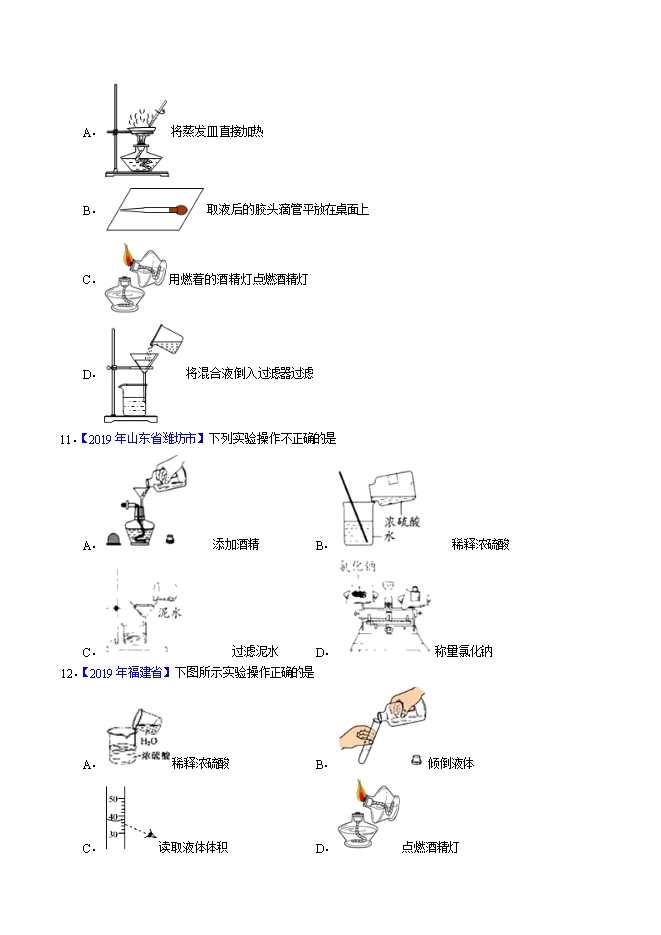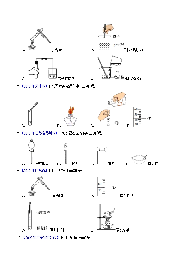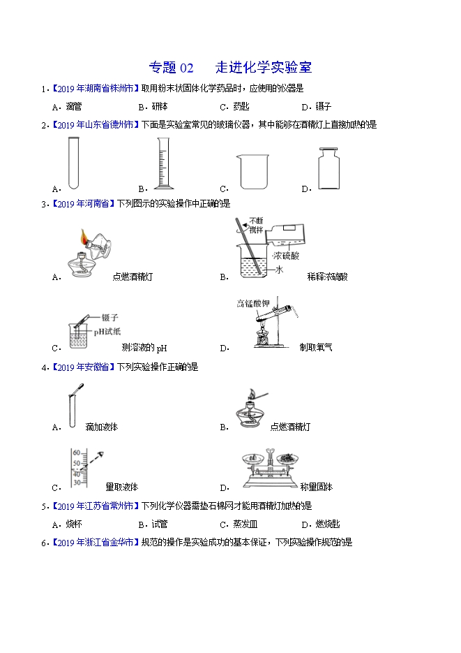 【内容简介】2019年中考真题化学试题汇编专题02 走进化学实验室(原卷版)