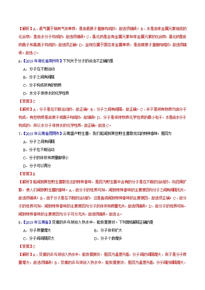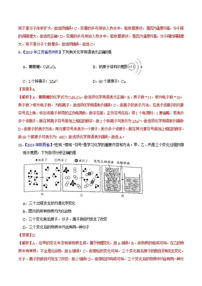 2019年中考真题化学试题汇编专题05 构成物质的微粒(解析版)
