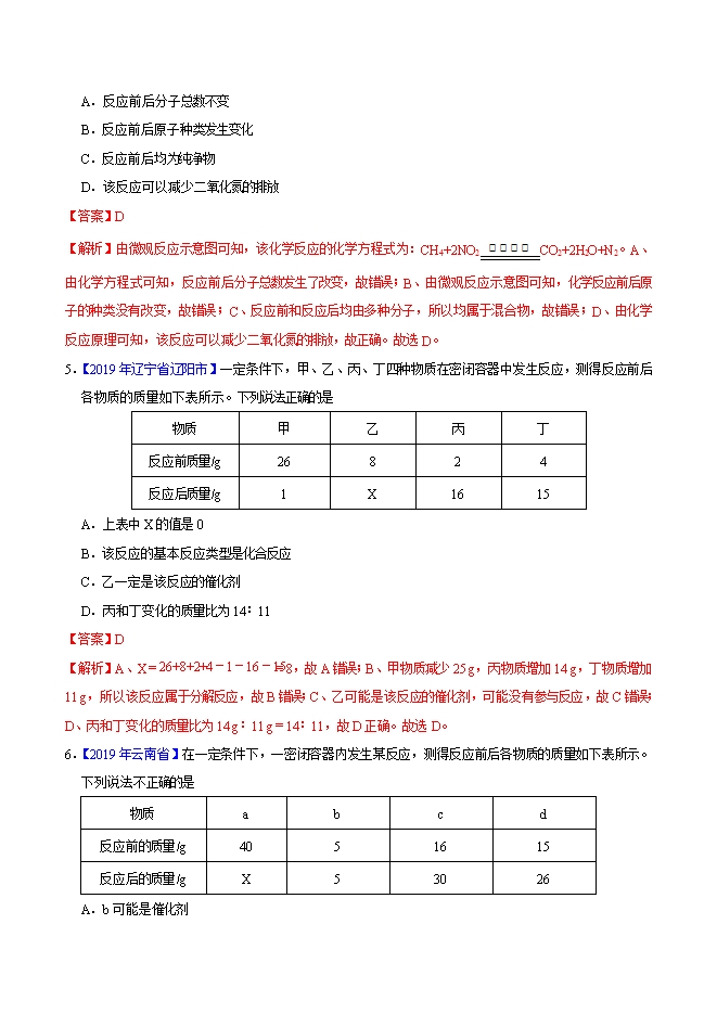 【内容简介】2019年中考真题化学试题汇编专题09 质量守恒定律(解析版)