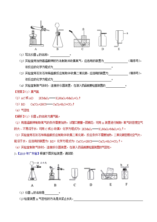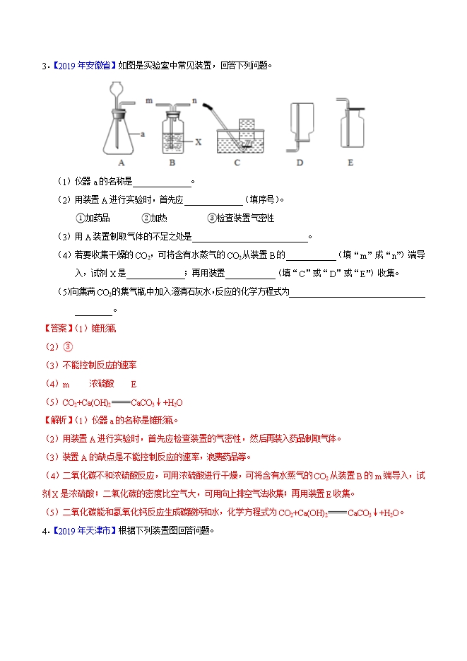 2019年中考真题化学试题汇编专题12 二氧化碳的制取的研究(解析版)