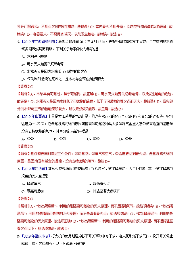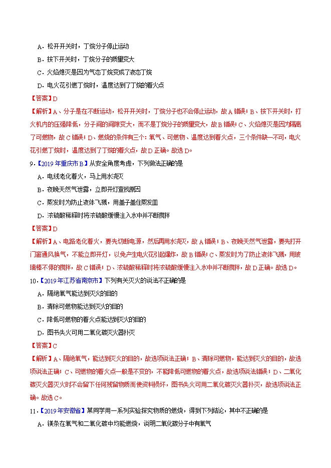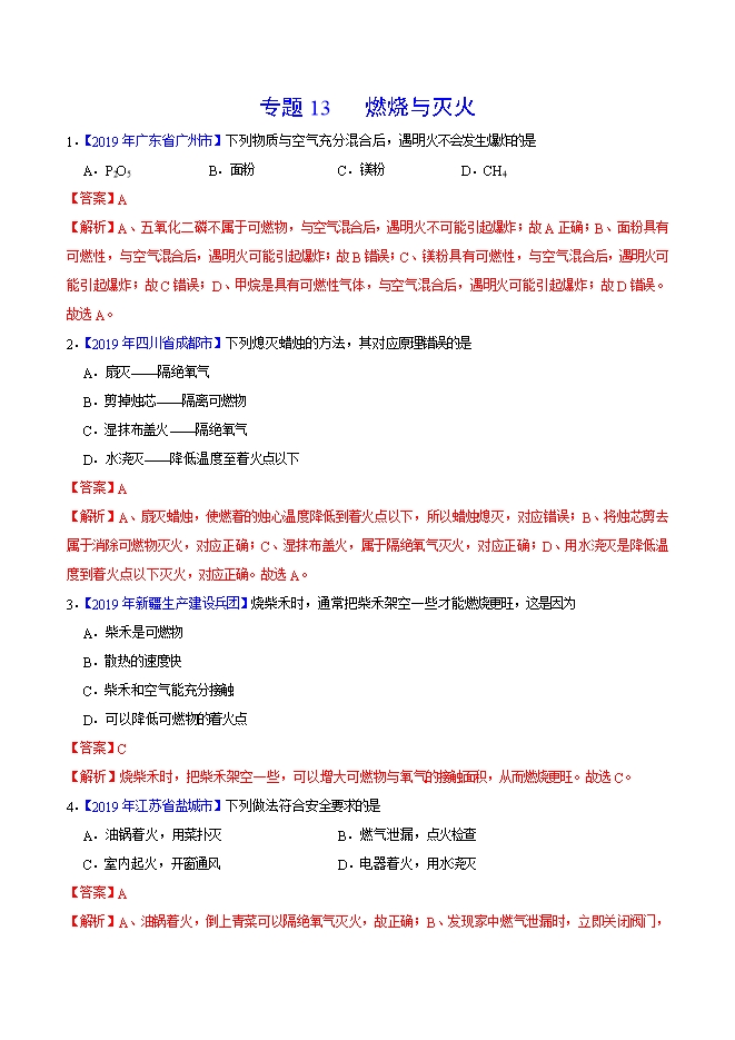2019年中考真题化学试题汇编专题13 燃烧与灭火(解析版)