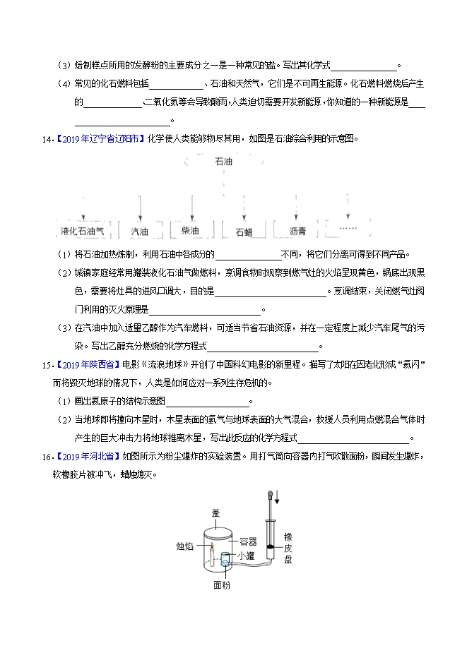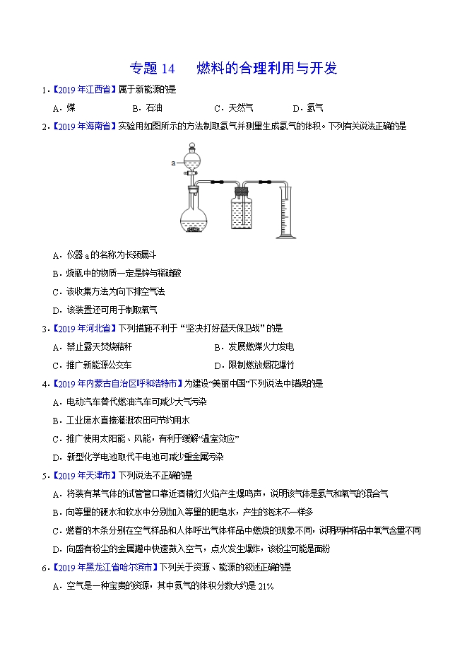 【内容简介】2019年中考真题化学试题汇编专题14 燃料的合理利用与开发(原卷版)