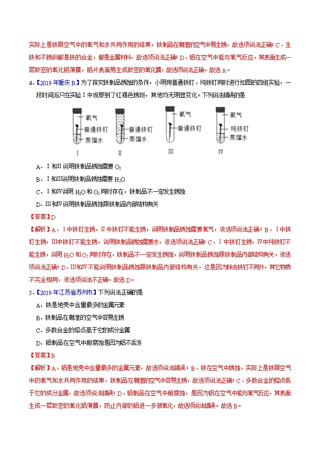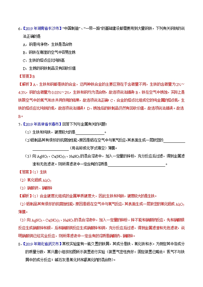 2019年中考真题化学试题汇编专题15 金属材料 (解析版)