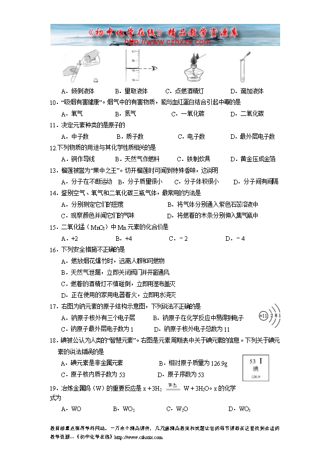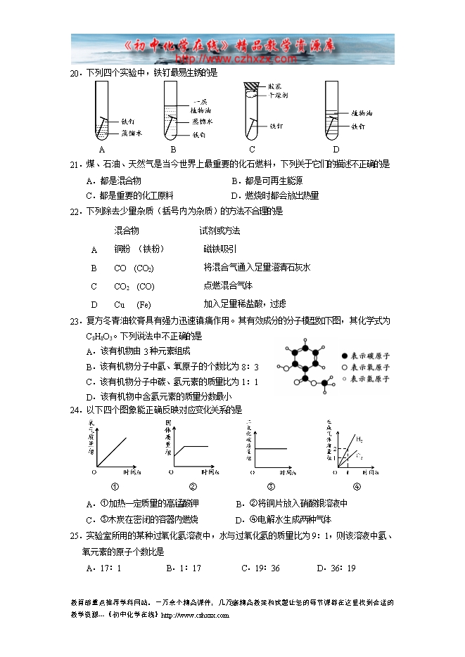 - 下一份试卷:2012中考化学模拟试题及答案(一)