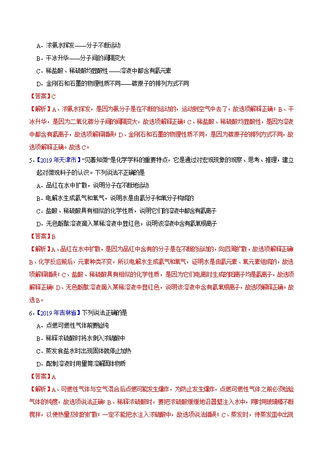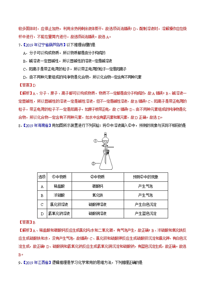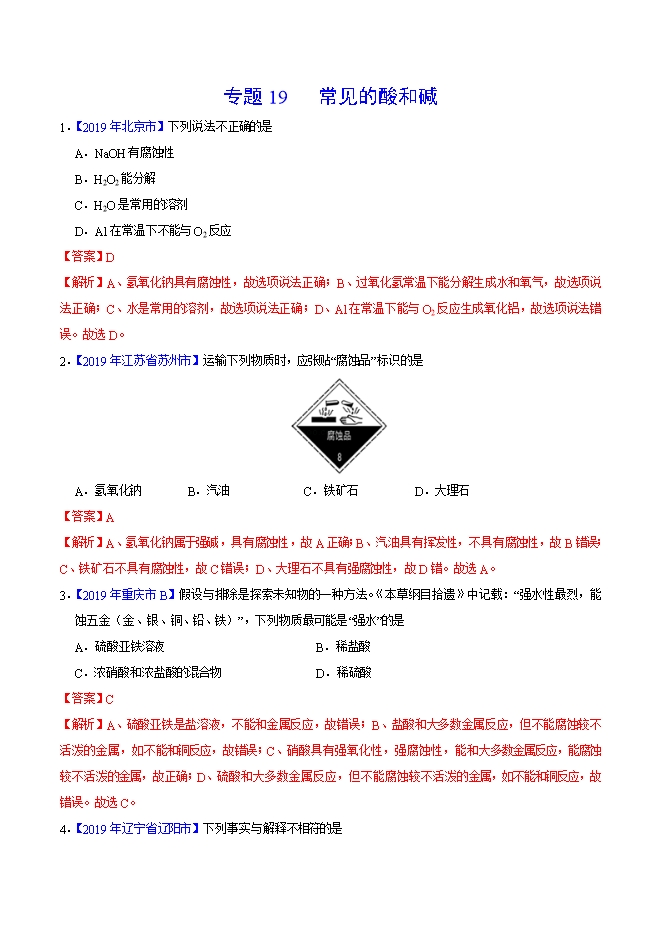 2019年中考真题化学试题汇编专题19 常见的酸和碱(解析版)