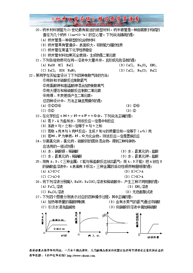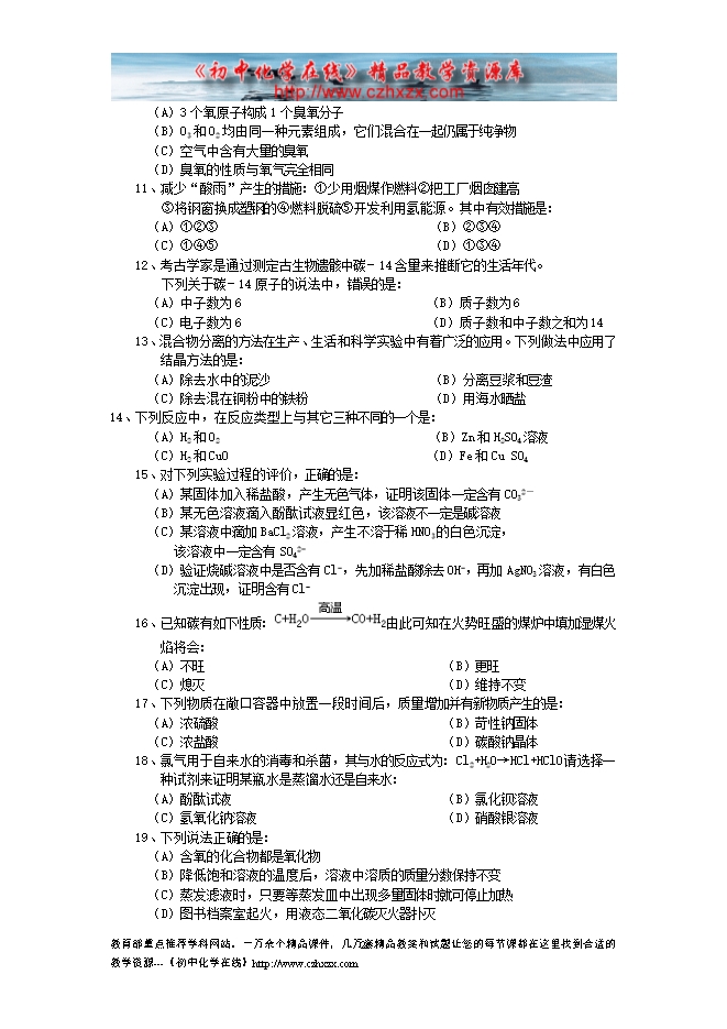 - 下一份试卷:2012中考化学模拟试题及答案(四)