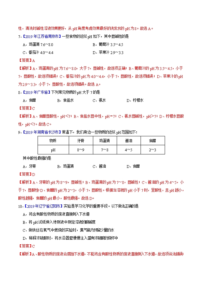 2019年中考真题化学试题汇编专题20 酸和碱的中和反应(解析版)