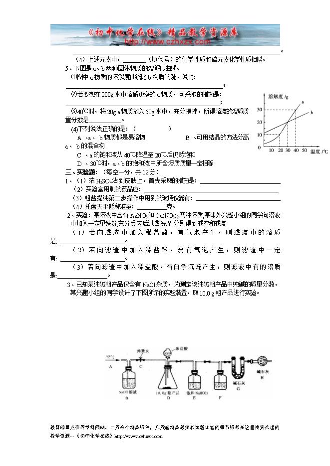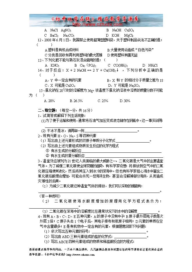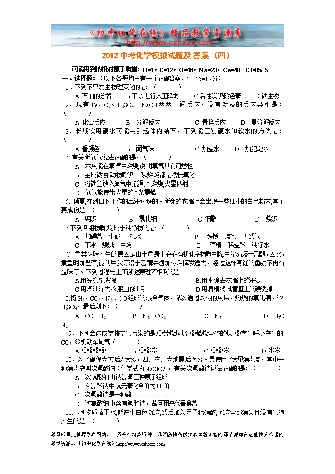 - 下一份试卷:2012中考化学模拟试题及答案(五)
