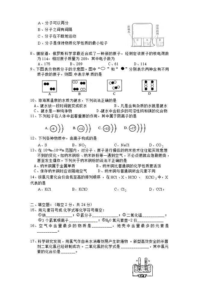 【内容简介】2020届海南省海口市第十四中学九年级上学期期中考试化学试题(word版含答案)