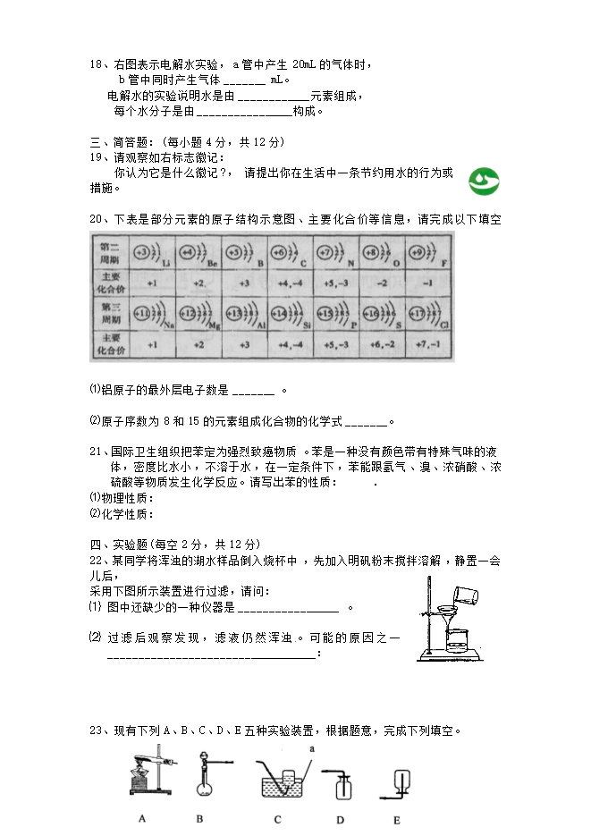 所属专辑: 《2020届全国各地九年级上学期期中考试化学试题汇总》专辑