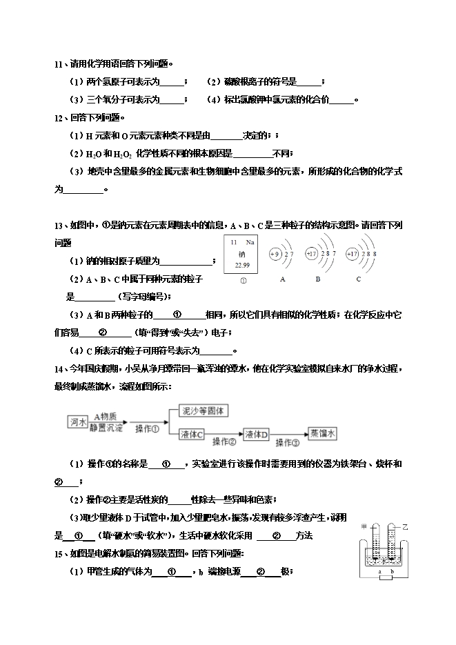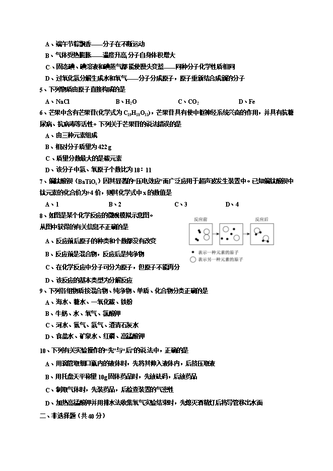 所属专辑: 《2020届全国各地九年级上学期期中考试化学试题汇总》专辑
